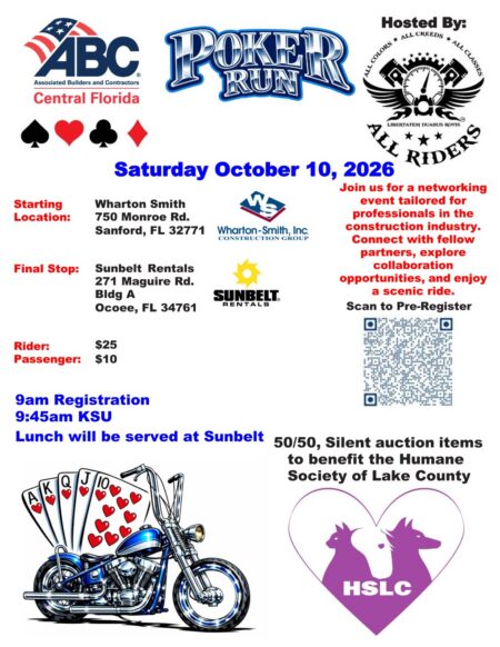 The 2026 ABC Charity Poker Run is our annual motorcycle poker run to network with other leaders in the Construction Industry in Central FL.