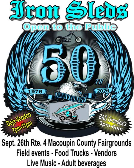The Iron Sleds MC 50th Anniversary Bash 2026 will be held at the Macoupin County Fair.